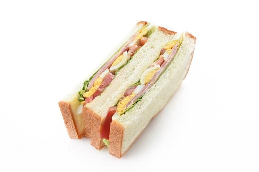 アンデルセンイギリスのパンでレタス、ベーコン、トマト、ゆで卵、サウザンアイランドソースなどをはさみま...