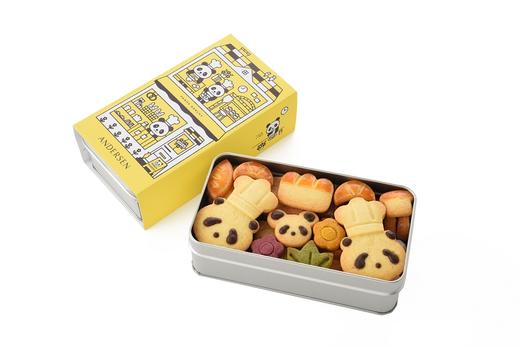 皆から愛される人気の動物パンダを、パン職人に見立て、クッキーにしました。ふたを開けると、上にはフラン...