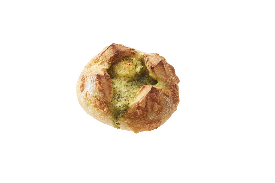 ジェノベーゼソース、ミックスチーズを包んで焼き上げ、バターフィリングを絞りました。