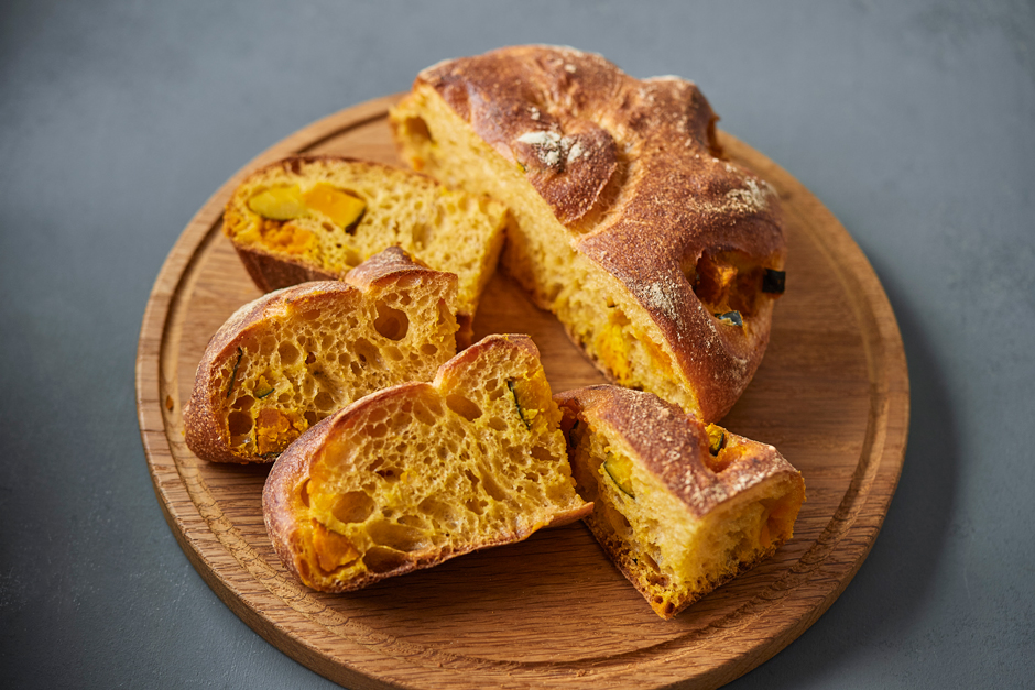 生地にもかぼちゃを練り込んでいるので、翌日もしっとりとした食感に。また、カットした鮮やかな断面は、食卓の彩りとしても活躍しそうです。