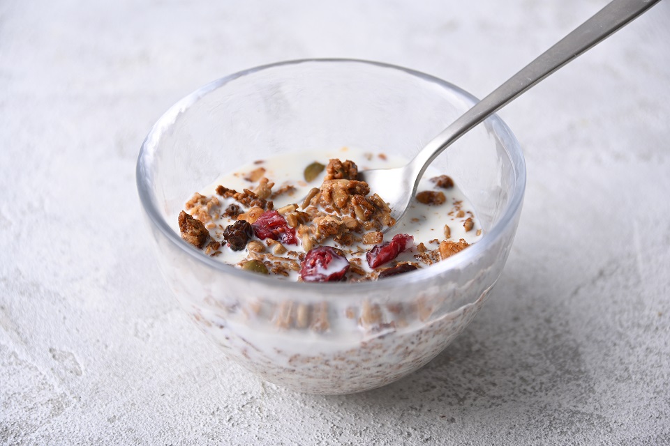 オーツ麦、くるみ、ひまわりの種、レーズンが入った、ほんのりと甘いライ麦パン「ミューズリーブロート」をイメージしました。フルーツやナッツの素材本来の味わいを大切にした、さくっと軽い食感のグラノーラです。