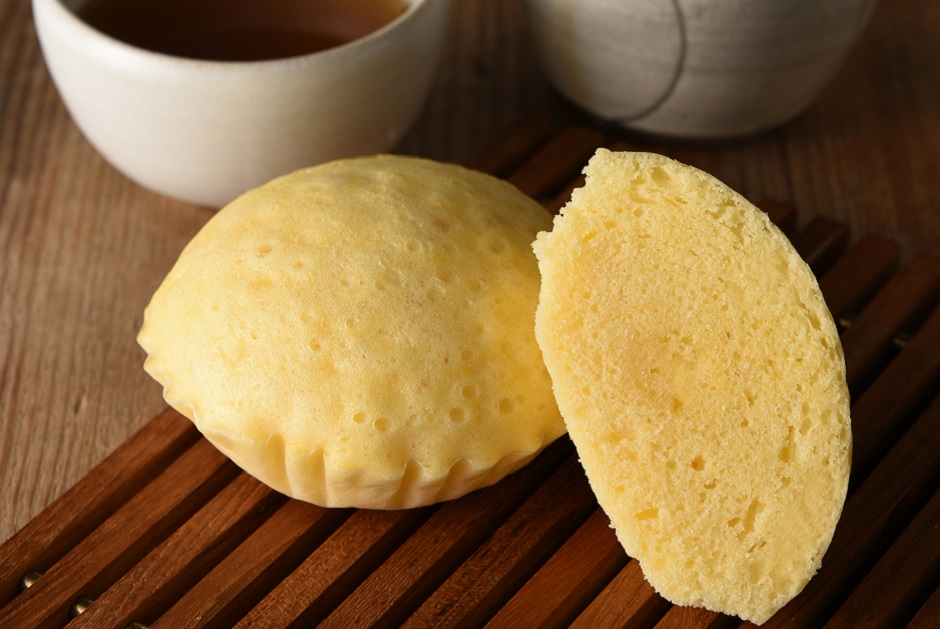 弾力があり、しっとりとした舌触り。卵のコクとやさしい甘さが特長の蒸しパンです。