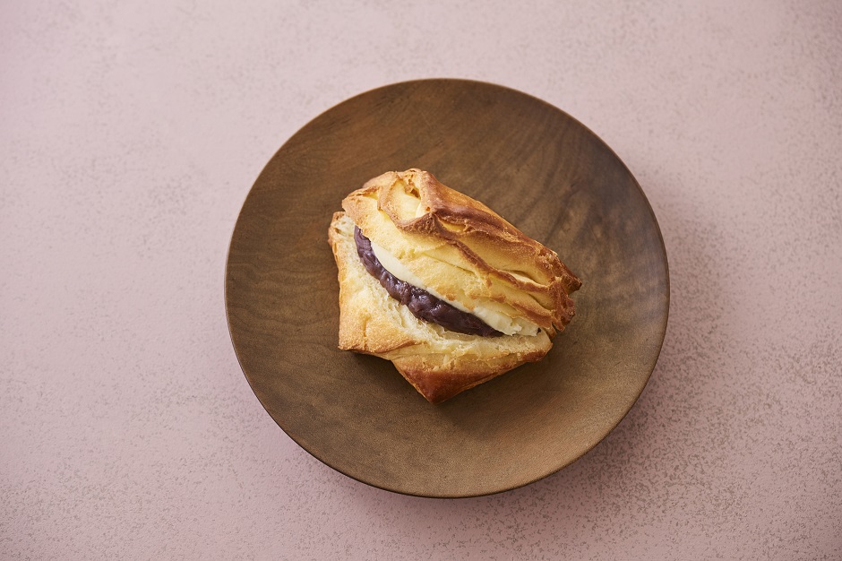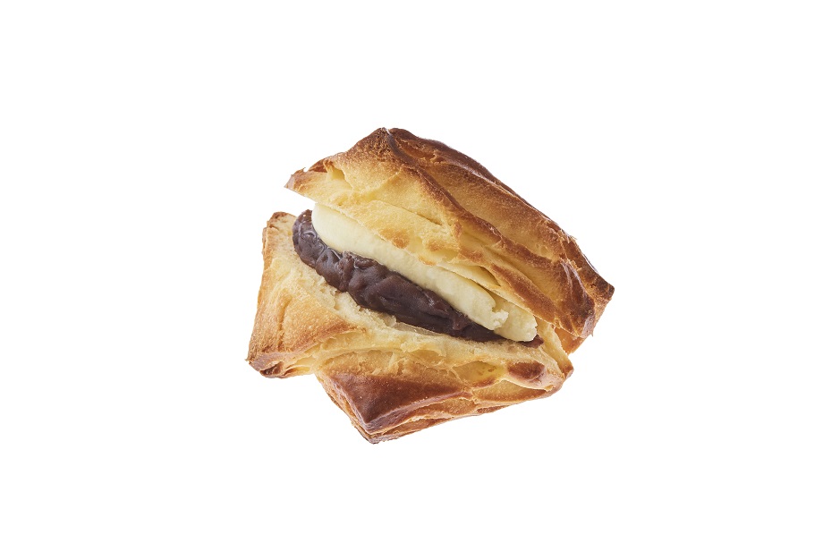 ザクザクとした食感が特長のデンマークスコーンを焼き上げ、粒あんと練乳クリームを絞りました。