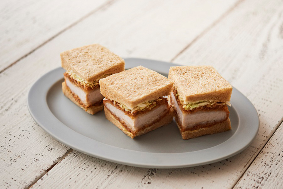 全粒粉入りのしっとりしたパンで、食パンサイズにぴったりの角ロースカツ三元豚を使用し、豚肉本来の旨みを最大限に引き出したロースカツ、キャベツを挟みました。はちみつと粒マスタードを加えたカツソースは、まろやかな味わいの中に、マスタードの風味がアクセントになり、バランスの良い仕上がりに!