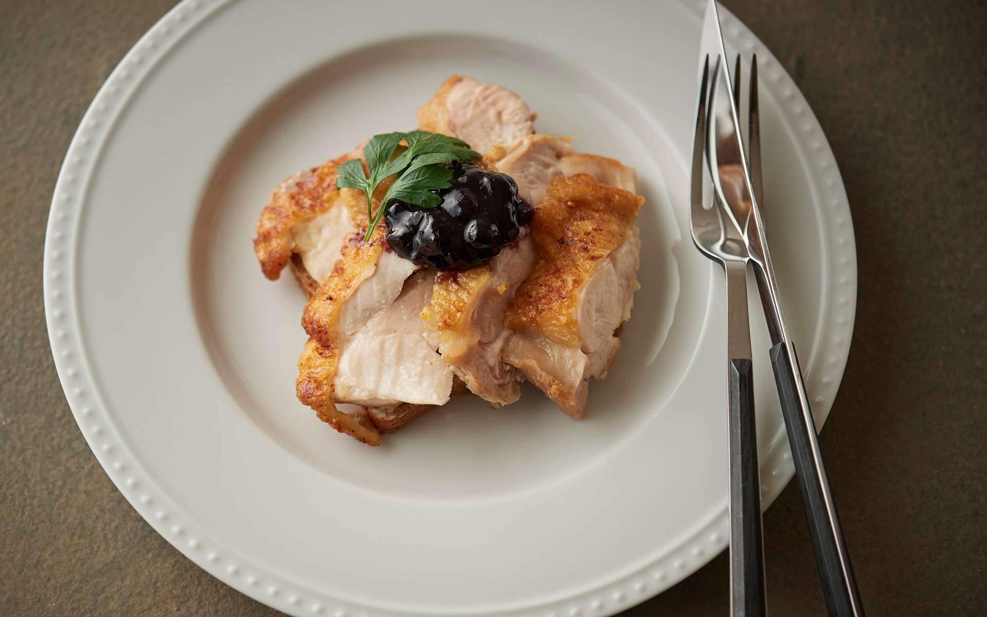 鶏もも肉の皮をカリカリになるまで焼くのがポイント!